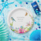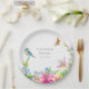 Plato De Papel Flores de bodas, lirios y pájaros acuarela