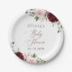 Plato De Papel Flores de Borgoña, Flores Rosa, Boho, Baby Shower