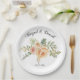Flores de cactus acuarelas y suculenta placa de papel boda. Un bonito ramo de flores de cactus de melocotones y hojas suculentas adorna este bonito plato de papel. Sus nombres están en tipografía de guiones y también incluye la fecha de su boda.