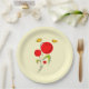 Plato De Papel Flores de corazón rojo y mariposas amarillas