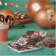 Plato De Papel Flores de crema y teracote en un fondo marrón oscu