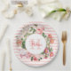Un hermoso monograma personalizado con ilustraciones florales vintage de rosas rosas rosas y flores enmarcando el nombre inicial con rayas rosas en el fondo. Un diseño botánico elegante con tonos rosas. Regalo ideal para niñas, madres, duchas para bebés, regalos para Navidades, decoración de guardería o regalo para cualquier otra ocasión especial. Visite nuestra tienda para ver toda nuestra colección. Personalizar el monograma a su nombre inicial.