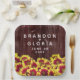 Añade un toque de encanto vintage a tu día especial con estos platos de papel de temática floral, con una mezcla de mini girasoles vivos y de dos tonos floridos sobre una valla templada. Personalizar con nombres de recién casados y fecha de boda. ¡Una gran idea para los temas rústicos y bodas de otoño! Diseño © W.H. Sim. Ver más en zazzle.com/expressionsoccasions