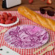 Plato De Papel Flores de tinta abstracta cielo rosado