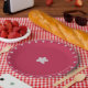 Estos alegres platos rojos encajarán perfectamente con el ánimo para su celebración. Las flores garabateadas en el centro y esparcidas por la llanta muestran la alegría y el capricho que realmente hacen un fiesta.