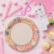 Disfrute de una elegancia sin esfuerzo con nuestros platos de papel de Flores Distintas. La bonita decoración floral sobre un suave fondo de melocotón aporta un toque de sofisticación sin el ruido de la limpieza. Perfecto para bodas, duchas de novias, cumpleaños y más.