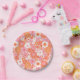 Platos de Papel Flores Lindas Florales Rosa y Naranja Boho Retro