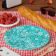 Plato De Papel Flores plásticas Retro 60 Patrón floral Cyan de lo
