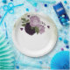 flores lilac y plum púrpura hojas verdes placa de papel botánico