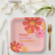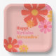 Plato De Papel Flores retro burguesas y groovy felices cumpleaños