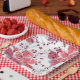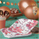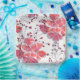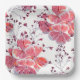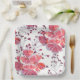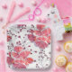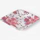 Plato De Papel Flores rojas rosadas sobre blanco.