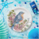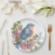 Flores románticas de verano con un plato de papel de pájaro azul para el cumpleaños romántico y veraniego estilo mariposa para ella.