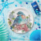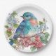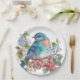 Flores románticas de verano con un plato de papel de pájaro azul para el cumpleaños romántico y veraniego estilo mariposa para ella.