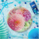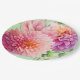 Las flores rosadas de Dahlia Flowers tienen dos hermosas flores de Dahlia pintadas de rosa y morado y un lindo caldo. Las hojas y tallos verdes con flores blancas pequeñas actúan como un acento en la imagen con estampado. La única agrupación de flores es grande y se extiende más allá de los bordes.