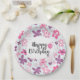 Plato De Papel Flores rosadas lindo Patrón caprichoso Cumpleaños