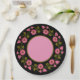 Flores rosadas | Placa de papel Placa de papel boda floral, rica y divertida, con una corona floral de color acuático rosa sobre un fondo negro que contrasta. Es un lugar con un agradable toque de elegancia clásica, aunque bastante bohemio. Siéntete libre de personalizares y hazlo tú mismo; también, siéntete libre de mirar por el resto de la colección para encontrar productos a juego y coordinados.