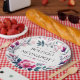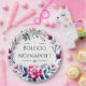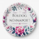 Celebren con estilo estas florecientes placas de papel inspiradas en el arte popular centroeuropeo. Con arreglos circulares de flores rosadas y violetas con hojas verdes, vienen con el texto "Boldog névnapot" —personalizable completo para su ocasión especial.
