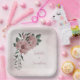 Un plato único de papel boda con flores romanticas rosadas y hojas verdes. PARA OBTENER MÁS PRODUCTOS COINCIDENTES, haga clic en la colección superior o póngase en contacto conmigo.
