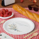 Descubre la esencia de la elegancia rústica con nuestros platos de papel para ducha de boda rústicos, donde la belleza atemporal se une a la delicada gracia de la naturaleza. Contra un fondo azul polvoriento, emergen dos ramos de flores pintados a mano con acuarela, mostrando una armoniosa mezcla de flores silvestres azules polvorientas y amarillas suaves, junto a la pureza de margaritas blancas y rosas. Como si fueran arrancadas directamente de un prado soleado, este diseño captura la esencia de la belleza intacta y el amor que se despliega. Los tonos suaves y los detalles intrincados del ramo de flores silvestres preparan el escenario para una boda tan natural como encantadora. Creado por Simply Farmhouse Press.