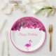 Flores tropicales y flamingo Placa de papel de cumpleaños.