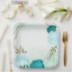 Hermosa placa de papel boda con flores turquesa y azul claro y hojas verdes Los detalles purpurinas dorados se simulan. PARA OBTENER MÁS PRODUCTOS COINCIDENTES, haga clic en la colección de arriba o póngase en contacto conmigo