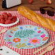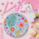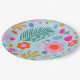 Plato De Papel Flores Y Hojas 03 Azul Y Rosa
