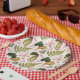 Plato De Papel Flores y hojas de primavera verdes elegantes y mod