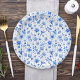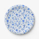 Plato De Papel Flores y Hojas Tropicales Azul Cobalto Patrón 7"