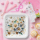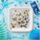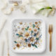 Elegantes flores y mariposas de papel quilling en platos de papel blanco, dorado y azul para bodas, cumpleaños o baby showers.