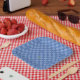 Plato De Papel Flower Checkered Pattern No. 01 - Light Blue