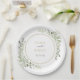 Con delicadas hojas de acuarela, este plato de papel botánico de moda se puede personalizar con los detalles especiales del día de la boda. Diseñado por Thisisnotme©