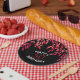 Hojas elegantes pintadas en tonos rosas calientes, rojas y naranjas sobre un marco negro Feliz cumpleaños y la edad de cumpleaños del invitado de honor en letras de moda. Cambie el color negro detrás del follaje a cualquier color que coincida con el tema fiesta. **TIP: Haga clic en el botón PERSONALIZAR (o en el vínculo adicional del personalizar al personalizar) para agregar, eliminar, mover y alinear información, cambiar los tipos de letra, los colores del tipo de letra e incluso el color de fondo. COORDINACIÓN de artículos disponibles en nuestra tienda —> http://bit.ly/2vJDUbf <—