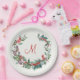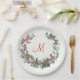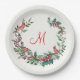 Plato De Papel Follaje de Navidades, holly, pájaro cardenal Monog