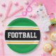 Este diseño deportivo, atlético, presenta texto en negrita FOOTBALL dentro de una amplia franja horizontal del centro negro adosada con franjas de carreras blancas y amarillas doradas contra tiras externas kelly green. El texto se puede personalizar.
