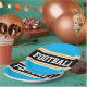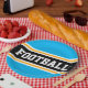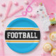 Este diseño deportivo y atlético presenta texto en negrita FOOTBALL dentro de una banda ancha negra realzada con doble franjas de carreras blancas y amarillas contra rayas de fondo azul cielo brillante. El texto de este diseño se puede personalizar.