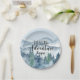 Que la aventura comience con el tema de las montañas forestales de aventura chapas de papel de bebé azul, con tipografía de escritura caligráfica. Consulte la colección completa de productos para este diseño en: https://www.zazzle.com/collections/forest_adventure_baby_shower-119311648144421112