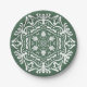 Esta mandala blanca se sienta sobre un fondo verde forestal. Los colores son tranquilos. Parte de la colección Erghenn Mandala.