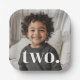 Un minimalista diseño de cumpleaños segundo con espacio para añadir tu propia foto y con la palabra 'dos.' encima. ¡Puedes cambiar la palabra a cualquier otra cosa si lo prefieres!