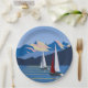 Esta fascinante escena pintoresca en la que veleros desfilan con gracia a través de una serena masa de agua, sus velas blancas ondulando contra el telón de fondo de majestuosas montañas nevadas. La yuxtaposición del tranquilo lago y los altísimos picos crea una vista impresionante que evoca una sensación de asombro y aventura en el corazón de la naturaleza.