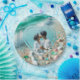 Corazón de foto personalizado con fondo de playa de vidrio marino en el océano. Bonito para regalos de boda o fiestas de compromiso.
