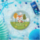 Un zorro lindo del bebé del rojo anaranjado y del blanco lleva un par de pañales amarillos sostenidos por un perno del pañal. Una bellota se sienta cerca de su cola espesa. Éstos fox diseño neutral de la fiesta de bienvenida al bebé del género con los árboles coloreados otoño y las hojas del roble en un día brillante y mullido de la nube son perfectas para una fiesta de bienvenida al bebé temática de los amigos del arbolado de la caída para la mamá que cuenta con un bebé o a una niña. © Chrissy H. Studios, LLC de las ilustraciones. Todos los derechos reservados.