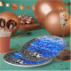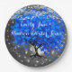 Romántico Rústico Bajo la Estrella Cuento de Hadas Frasco de Mason Radiante Platos de Papel de Boda de Corazón Azul Real Hoja Luciérnaga Árbol. Guirnaldas, Estrellas, Iniciales en el Tronco del Árbol de Corazón Azul, Frascos de Mason y Luciérnagas dan a este diseño un toque de cuento de hadas romántico rústico de lujo.