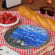 Plato De Papel Frasco de Mason Pizarra Corazón Azul Hoja Luciérna