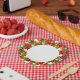 Este plato de papel diseñado con fresa es perfecto para fiestas o para uso diario. El diseño cuenta con un centro blanco con un borde de fresa maduro.