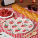 Placas de papel de la fresa con las servilletas de papel a juego.  Vea más mezcla y haga juego los productos en la colección de las fresas en https://www.zazzle.com/collections/strawberries_collection-119030629393964165