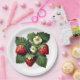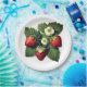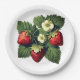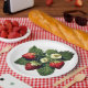 Placas de papel de fresas antiguas. ilustracion gráfico con algunas fresas maduras con hojas verdes y flores blancas. Tiene un agradable ambiente de verano temprano. Puede personalizar este elemento con su monograma/texto /logo . _____________ Creado por Alma Wad y Canva AI . ____________ Muy bien para un picnic de verano, fiesta de jardín, fiesta champête .