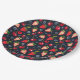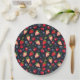 Plato De Papel Fresas y cerezas en un fondo oscuro