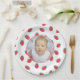 Un lindo patrón de fresa dibujado a mano con una plantilla de foto personalizado hace de estas placas fiestas la perfecta adición práctica y decorativa al fiesta con tema de fresa de su hijo! ¡Perfecto para una celebración de cumpleaños de Berry!