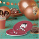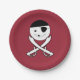 Amigable Jolly Roger Pirate. Sólo un sonriente y feliz pirata sin cráneo y sin huesos cruzados. Es una sonriente cara amigable jolly roger que es una toma única e interesante de un símbolo pirata clásico. Es un símbolo de paz y buena voluntad, más que el símbolo tradicional del miedo y la muerte. Un parche sobre el ojo izquierdo, un diente perdido, un par de espadas cruzadas hacen de esto un pirata auténticamente divertido para el pirata de los lanzadores o el tema de la playa. Mezcla con otros colores y patrones caribeños para una decoración coordinada. Perfecto para "Hablar como un Día del Pirata", una fiesta de cumpleaños, o sólo un divertido tema de vela oceánica.