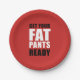 Friendsgiving consigue a sus pantalones gordos el fiesta listo las placas de papel con el fondo rojo. Grande para un banquete de Friendsgiving o de la acción de gracias. ¡Consiga sus pantalones gordos listos porque es hora de rellenar su cara!